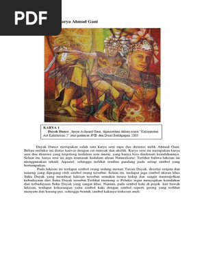 . Gambar 11 Dayak Dance karya Achmad Gani dipamerkan dalam. A Dayak Dance Karya Ahmad Gani Dayak Dance Merupakan Salah Satu Karya Seni Rupa Dua Dimensi Milik Ahmad Gani Beliau Melukis Ini Diatas Kanvas Dengan Cat Minyak Dan Akrilik. Keterampilan dalam mengolah bahan menggunakan alat dan penguasaan teknik yang.